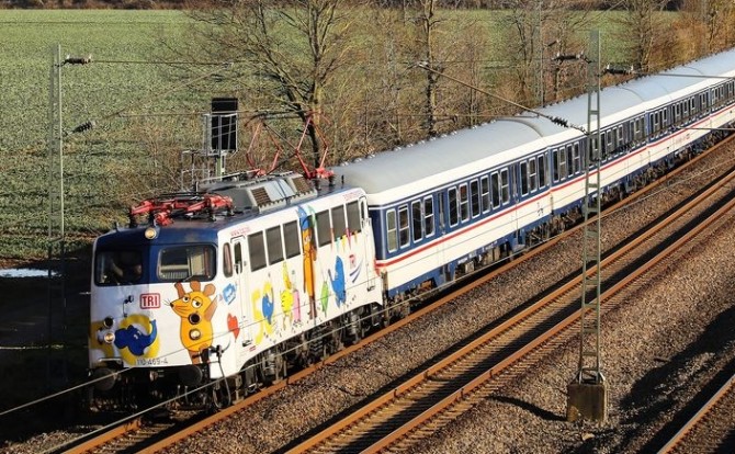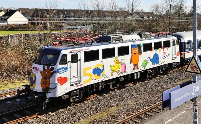 Die Elefant mit seinen Freunden auf dem Weg nach Düsseldorf. Copyright: Joachim Bügel / Slg. Eisenbahnstiftung
