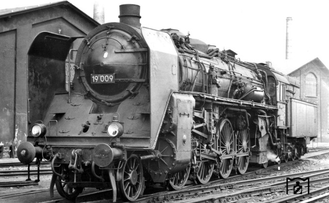Unten: Die 19 023 war mit einem drei-domigen Kessel ausgestattet, der immer mal wieder zwischen den 19ern getauscht wurde. © Heinz Finzel / Slg. Eisenbahnstiftung