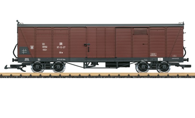 Modell eines gedeckten Güterwagens der Bauart GGw, wie er noch lange bei der DR auf den Schmalspurbahnen in Sachsen im Einsatz war. Originalgetreue Farbgebung und Beschriftung der DR Epoche III. Metallradsätze.